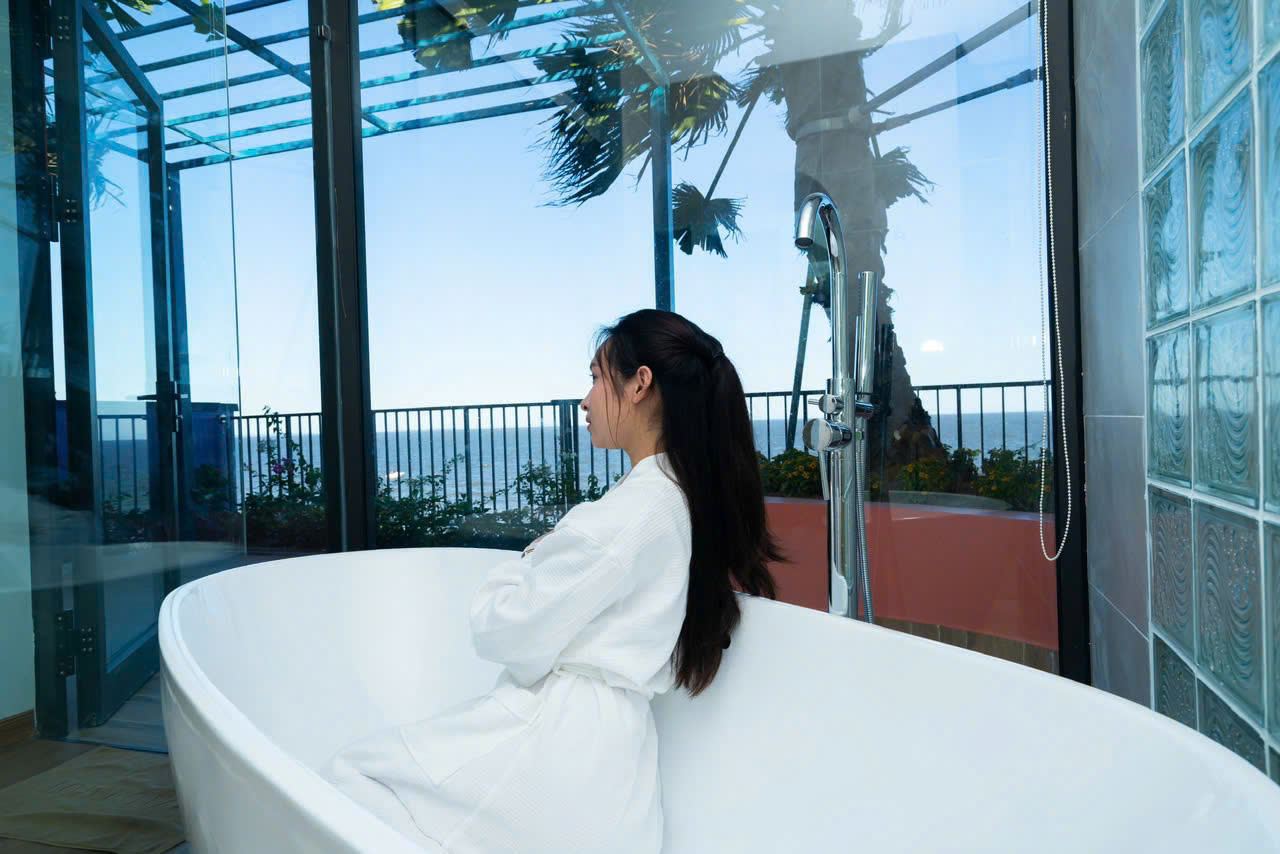 🌸 Có 2 bồn tắm; miễn phí 2 chai nước/phòng; đầy đủ dầu gội đầu, sữa tắm, nước rửa tay cao cấp, chụp đầu, dao cạo râu.